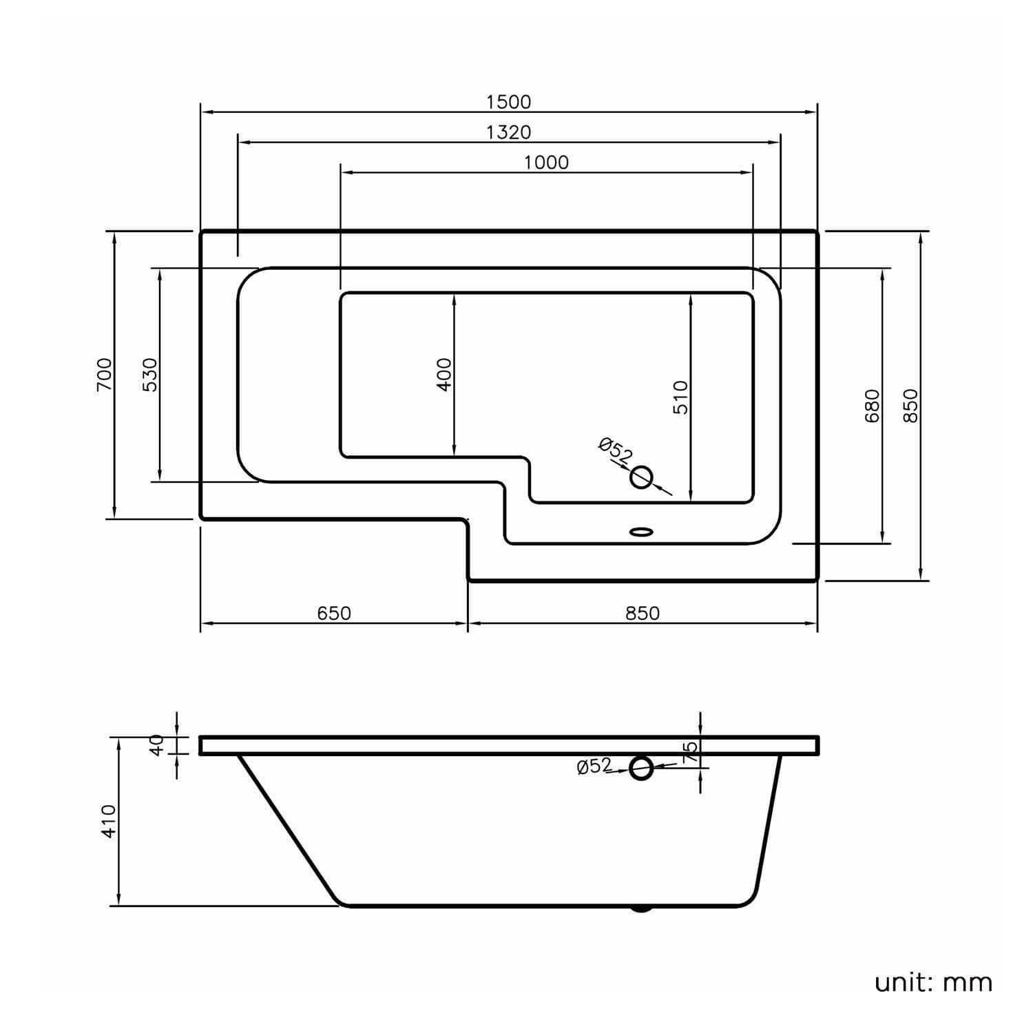 AquaSoak 1500mm L Shaped Shower Bath Right Hand