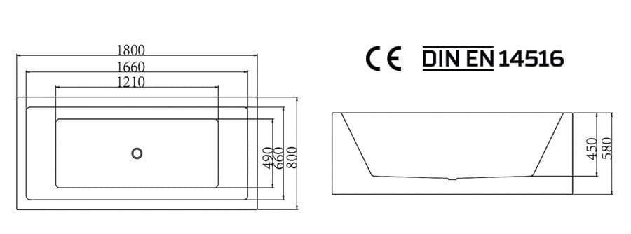 AquaSoak Square Double Ended Freestanding Bath Tub Acrylic White 1800mm x 800mm